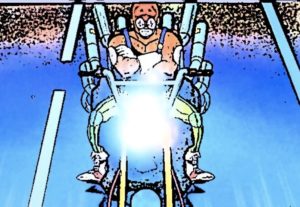 ついに鉄雄と戦う時が来てしまいました。大佐も鉄雄目掛けて宇宙から攻撃できるレーザービームの様なものを発射し、腕をちぎられた鉄雄は自力で腕を取り戻します。